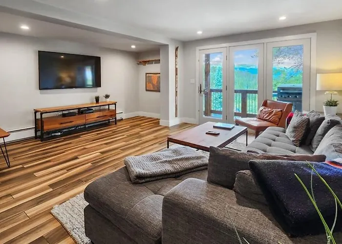 The 3-bedroom 4Br Mt Baldy Townhome On Bus Route is located in a mountain area and features a sunny patio with the mountain view. The property is situated in the mountain and boasts parking.